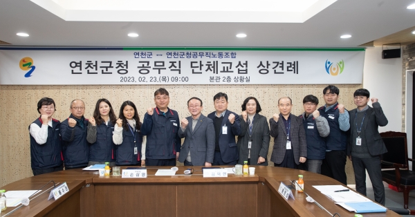 [금요저널] 연천군은 23일 본관 2층 상황실에서 공무직노동조합과 단체교섭 상견례를 개최했다.