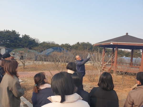 23일 수원시 공원녹지사업소 대회의실과 수원 무궁화원에서 진행된 특강은 ㈜두산 사회공헌팀 무궁화 보급담당 김득환 강사의 강의와 무궁화 전지·전정 현장실습으로 이뤄졌다.