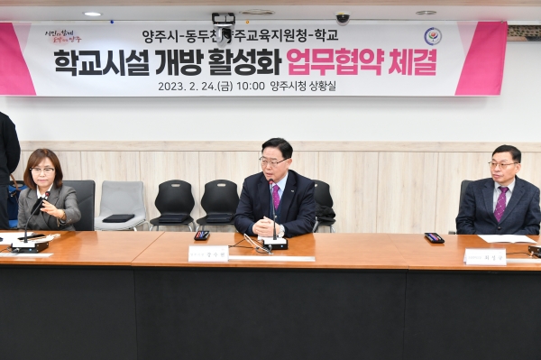 [금요저널] 양주시는 지난 24일 동두천양주교육지원청, 한국외식과학고등학교, 조양중학교, 회천중학교와 학교시설 개방 활성화를 위한 업무협약을 체결했다.