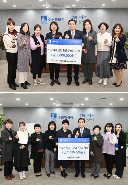 [금요저널] 경기도여성단체협의회 수원시지회, 어울림 헤라봉사회가 “튀르키예·시리아 지진피해 복구 지원에 사용해 달라”며 수원시에 각각 200만원, 205만원을 기탁했다.