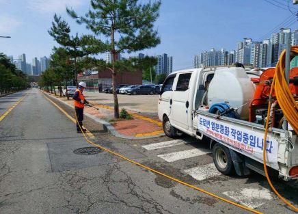 2단계는 띠 녹지에 염분 중화제를 뿌려 토양 산도를 정상화하고 생육 환경을 개선하는 것이다.