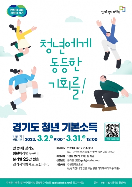 [금요저널] 수원시가 만 24세 청년을 대상으로 하는 ‘2023년 1분기 경기도 청년 기본소득’ 지급 신청을 3월 31일 오후 6시까지 받는다.