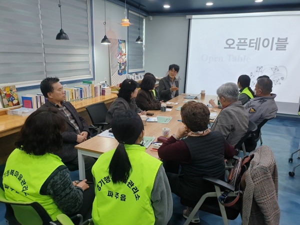 2023년 개소와 동시에 파주‘리’ 행복마을관리소에서 파주‘읍’ 행복마을관리소로 명칭이 변경되고 행복마을관리소의 활동 범위도 파주읍 전체로 확장됨에 따라 관리소 직원과 운영위원회의 역할, 마을의 문제점과 해결방안에 대해 논의가 이뤄졌다.