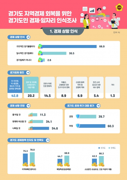 경기도의회가 도민의 경제상황 체감도를 측정하고 주민 맞춤형 경제정책 방향을 설정하기 위해 실시한 ‘2022년 5차 경기도 지역경제 회복을 위한 경기도민 경제·일자리 인식조사’ 결과를 2일 발표했다.
