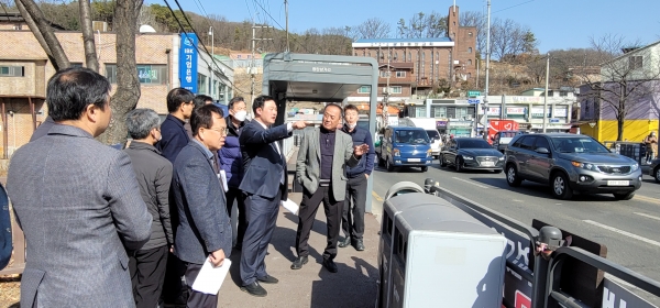 관계부서에서는 테크 부분 확장 설치해 버스승강장 뒤로 별도 보행공간 확보 등이 현실적으로 통행불편을 해소할 수 있을 방안일 것이라며 “빠른 시일내 예산을 확보해 관련사업을 추진하겠다”고 민원 해결의 의지를 표명했다.