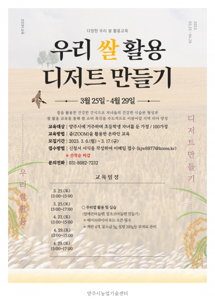 양주시, 우리쌀 활용 디저트 만들기 교육 수강생 모집