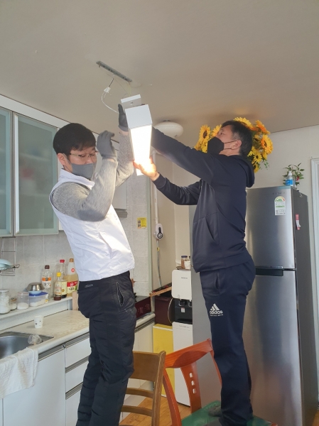 이날 LED조명·친환경 콘센트 교체뿐만 아니라, 어르신들의 안전을 예방하고자 소방시설 및 전기설비 안전진단을 병행 추진했고 주민자치회도 동참해 방역서비스 제공에 힘썼다.