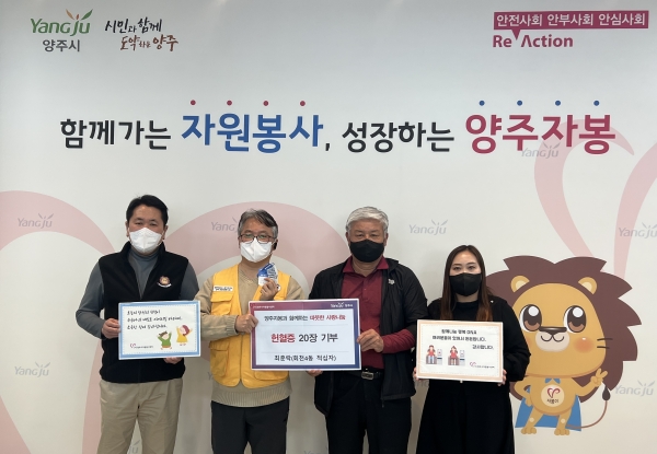 [금요저널] 양주시자원봉사센터는 지난 6일 혈액 수급 문제로 위급한 상황이었던 관내 자원봉사자 가족을 위해 필요한 헌혈증을 기부했다.