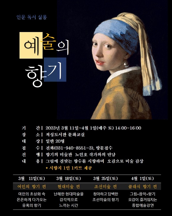 [금요저널] 파주시 적성도서관은 3월 11일부터 4월 1일까지 매주 토요일 인문독서살롱 ‘예술의 향기’를 운영한다고 밝혔다.