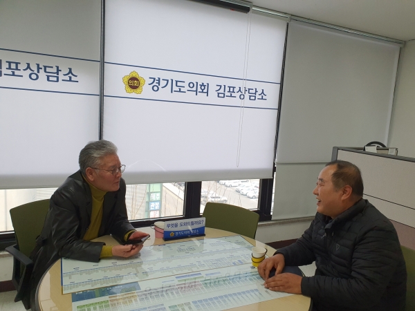[금요저널] 홍원길 도의원은 지난 7일 경기도의회 김포상담소에서 조종술 아시아로컬푸드복지협동조합 이사장과의 면담을 통해 김포지역 농업인들이 처한 현실에 대해 공감을 표시하며 경기도의회 차원에서 적극적인 지원을 약속했다.