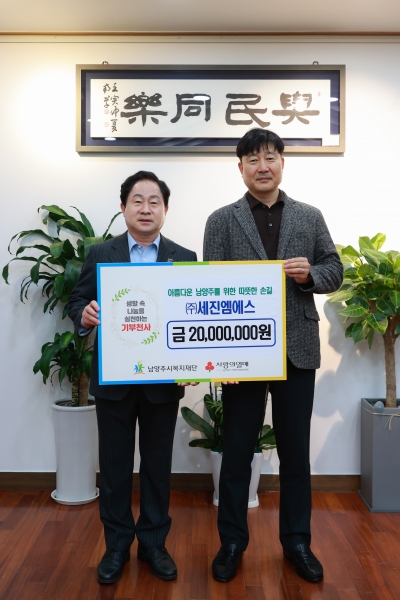 남양주시복지재단 심우만 대표이사는 “지속적인 후원으로 온기를 전해 주고 계신 ㈜세진엠에스 최성해 대표이사님께 진심으로 감사드린다”며 “이번 후원금은 보호 종료 아동과 청소년, 어르신 등 복지 사각지대에 놓인 다양한 취약계층을 위해 쓰일 수 있도록 하겠다”고 전했다.