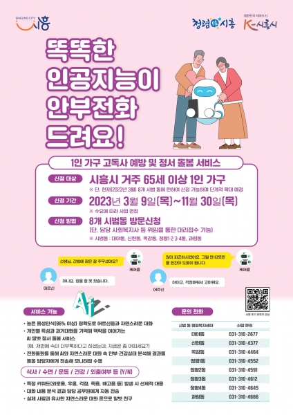 시는 이번 업무협약으로 사전신청 받은 독거노인을 대상으로 3월 9일부터 AI 어르신 돌봄 전화 서비스를 개시해 3개월간 주 2회 시범으로 운영한다.