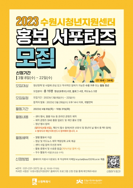 수원시청년지원센터, 2023 청년 홍보 서포터즈 15명 모집