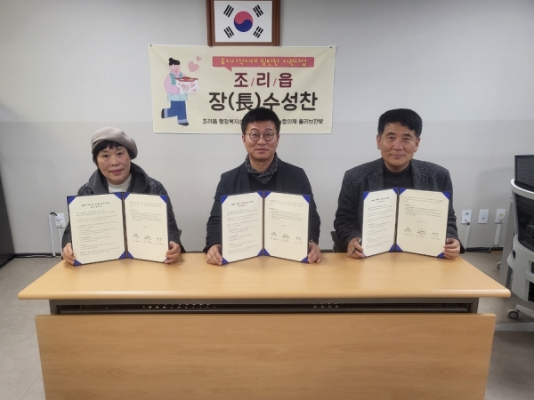 [금요저널] 파주시 조리읍은 8일 조리 행복나눔협의체 및 반찬업체 올리브찬방과 고위험 가구에 밑반찬을 지원하는 ‘조리읍 장수성찬’ 업무협약을 체결했다.