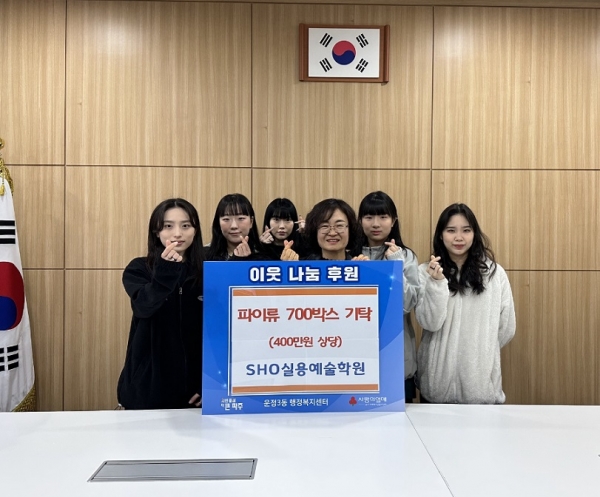 [금요저널] 파주시 운정3동은 지난 6일 운정3동 소재 SHO실용예술학원 한울점에서 400만원 상당의 간식을 기탁 받았다고 밝혔다.