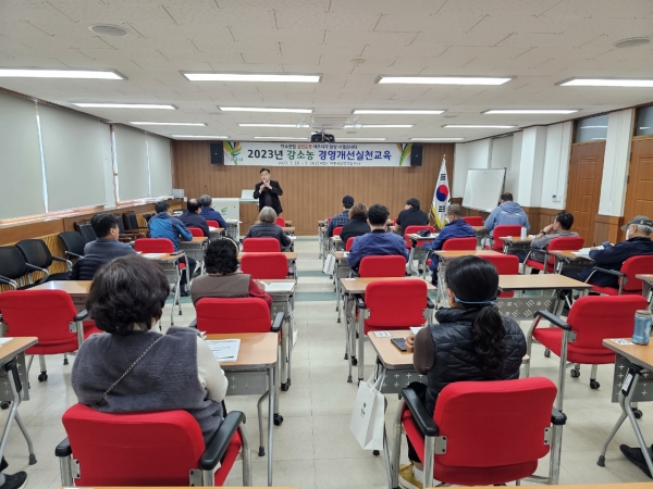 [금요저널] 여주시는 지난 10일 농업기술센터 세미나실에서 강소농가 33명을 대상으로 2023년 강소농 경영개선실천교육을 시작했다.