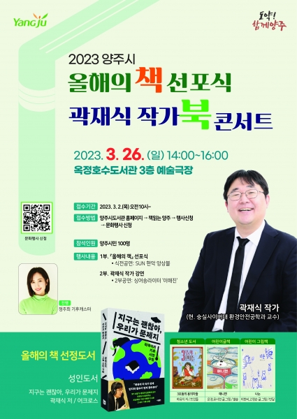 [금요저널] 양주시는 오는 26일 오후 2시 옥정호수도서관 예술극장에서 ‘2023 양주시 올해의 책 선포식 & 곽재식 작가 북콘서트’를 개최한다.