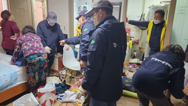 대상자는 최근 낙상사고로 무릎이 골절돼 거동이 힘든 독거노인으로 집 안에는 청소를 하지 못해 쓰레기가 쌓여 있었다.