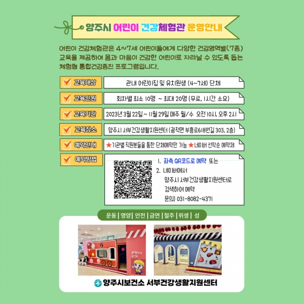 양주시,‘어린이 건강체험관’새 단장… 오는 22일부터 운영 재개