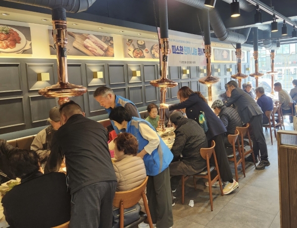 [금요저널] 광명시 광명3동 저소득 어르신을 위해 명륜진사갈비 광명사거리점에서 지난 14일 점심 식사를 대접했다.