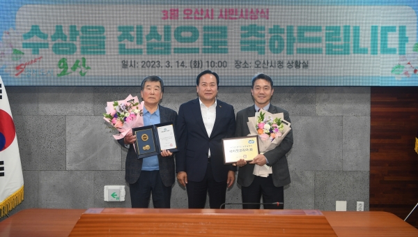[금요저널] 오산시는 지난 14일 지역사회를 위해 봉사하고 헌신한 유공자에게 감사한 마음을 전달하는 3월 시민시상식을 시청 상황실에서 개최했다고 밝혔다.