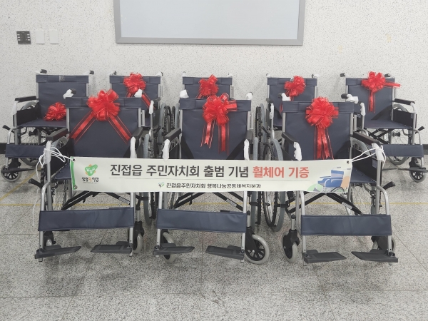 [금요저널] 남양주시 진접읍 주민자치회는 지난 14일 ‘제1기 주민자치회 출범식’에서 독거 어르신 등 거동이 불편한 진접읍 주민들을 위해 기증한 휠체어 8대를 진접읍 지역사회보장협의체에 전달했다.