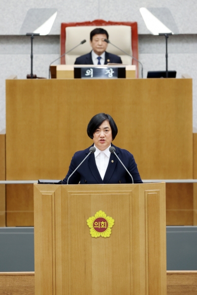 또한, “저 또한 도의원으로서 관행에 젖지 않고 항상 도민을 바라보고 도민의 목소리를 대변하기 위해 더 노력할 것”이라고 도정질문을 마무리했다.