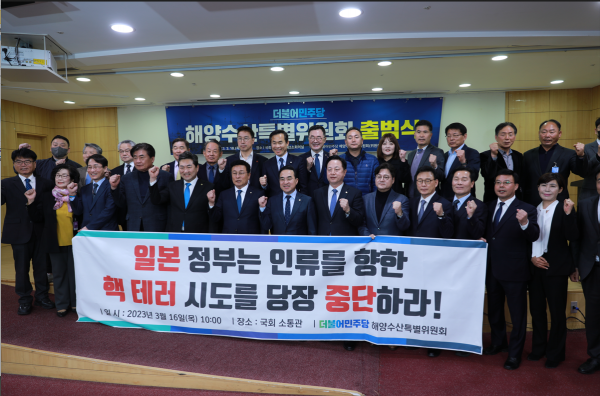 한편 출범식에 앞서 더불어민주당 해양수산특별위원회는 국회 소통관에서 ‘일본 정부의 후쿠시마 방사능 오염수 방출 규탄’ 기자회견을 진행했다.