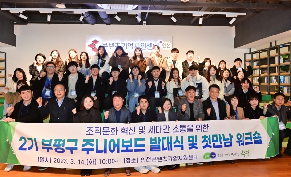 [금요저널] 부평구는 지난 14일 청천동 콘텐츠기업 지원센터에서 2기 부평구 주니어보드 발대식을 열고 본격적인 조직문화 소통을 시작했다.