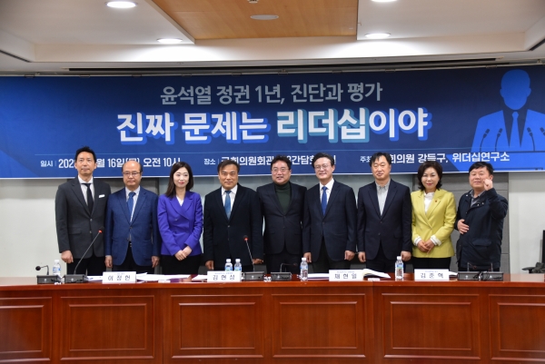 [금요저널] 국회 교육위원회 소속인 강득구 의원과 위더십연구소는 16일 오전 10시, 국회 의원회관 제8간담회의실에서 ‘윤석열 정권 1년, 진단과 평가 – 진짜 문제는 리더십이야’ 토론회를 개최했다.