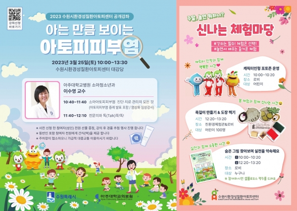 [금요저널] 수원시환경성질환아토피센터는 3월 25일 오전 10시 센터 대강당에서 ‘아는 만큼 보이는 아토피피부염’을 주제로 공개강좌를 연다.
