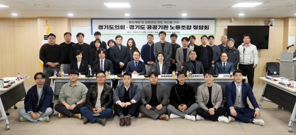 [금요저널] 경기도의회 경제노동위원회 김선영 의원, 기획재정위원회 정승현 의원, 박상현 의원, 보건복지위원회 황세주 의원, 박재용 의원, 문화체육관광위원회 이경혜 의원은 17일 경기도의회 중회의실에서 경기도의회·경기도 공공기관 노동조합 관계자들과 공공기관 통합채용 및 정원관리 제도 개선을 위한 정담회를 실시했다.