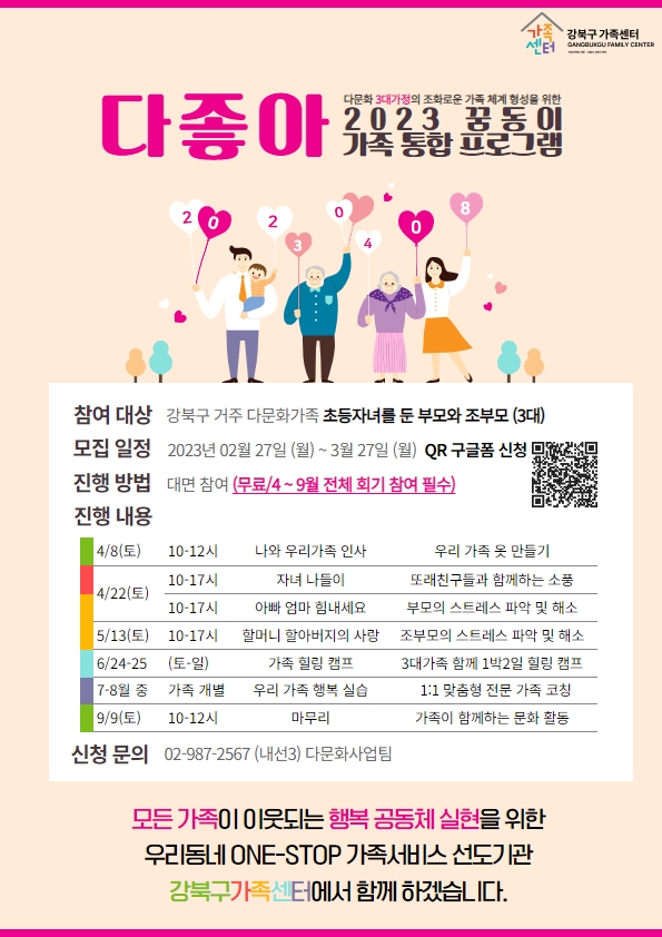 자세한 사항은 강북구가족센터 홈페이지에서 확인하거나 강북구가족센터 다문화사업팀으로 문의하면 된다.
