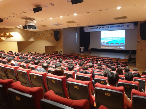 [금요저널] 시흥시가 지난 17일 시청 늠내홀에서 6급 이상 관리직 공직자 등 197명을 대상으로 상급자의 청렴 본보기 자세를 구축하는 ‘관리직 공직자 청렴 솔선수범 교육’을 진행했다.