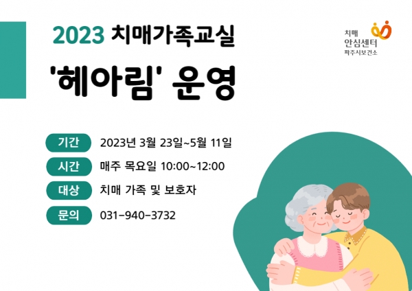 교육은 3월 23일부터 5월 11일까지 매주 1회 파주시치매안심세터 3층 다목적실에서 진행되며 효과적인 교육을 위해 전문 강사를 초빙해 운영할 예정이다.