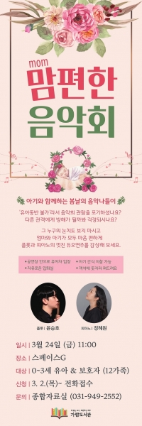 [금요저널] 파주시 가람도서관에서는 아기와 24시간을 함께 해야 하는 영유아맘을 위한 클래식 공연을 오는 3월 24일 오전 11시, 스페이스G에서 진행한다.