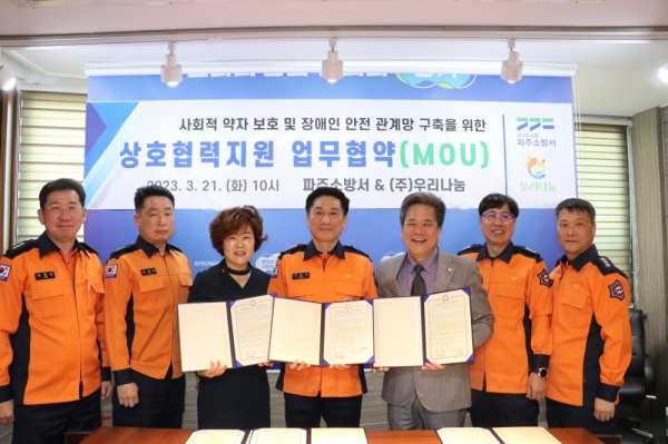 [금요저널] 파주소방서는 ㈜우리나눔과 사회적 약자를 보호하고 소방 안전 문화 확산을 위해 21일 파주소방서에서 업무협약을 체결했다.