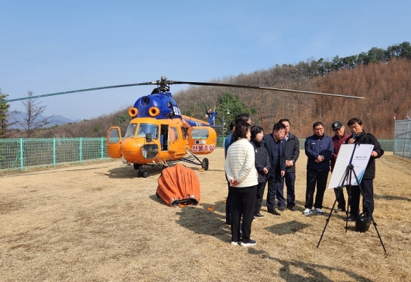 2023.3.6.자로 산불재난 국가위기경보 ‘경계’ 단계 발령으로 산불위험이 높아진 만큼 파주시의회 도시산업위원회 의원 7명은 산불대응센터 산불전문예방진화대 운영 현장과 임차헬기 계류장인 법원배수지를 방문해 임차헬기 운영사항을 확인했다.
