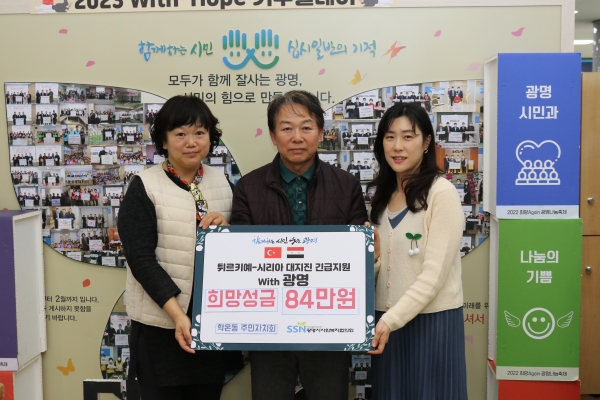 [금요저널] 광명시 학온동 주민자치회는 지난 21일 지진으로 어려움을 겪는 튀르키예·시리아 국민들을 위해 성금 84만원을 광명시사회복지협의회 광명희망나기운동사업에 기탁했다.