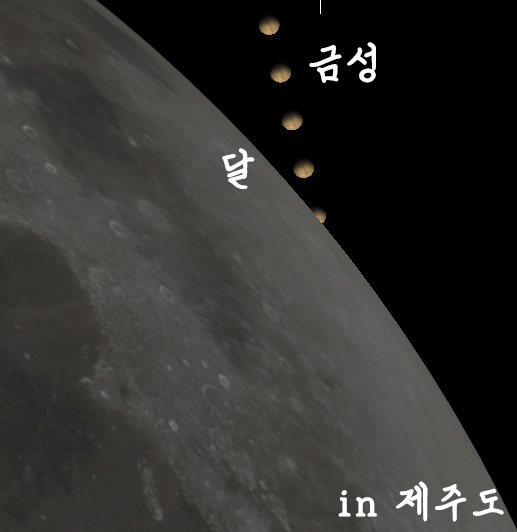이날 제주지역에서는 달 뒤편으로 금성이 가리는 금성 엄폐 현상을 관측할 수 있지만, 대전지역에서는 달과 금성이 3분각이내로 근접한 모습을 관측할 수 있을 것으로 예상된다.