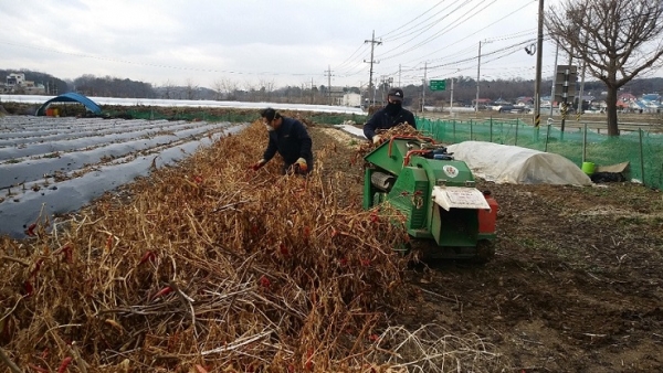 이에 파주시는 3월 초부터 고춧대, 깻대 등 밭작물을 재배하고 발생한 부산물을 대상으로 파쇄작업을 진행하고 있다.