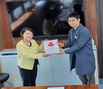 파주시 운정5동, ㈜삼오플러스에 착한나눔 1호 기업 인증 액자 전달