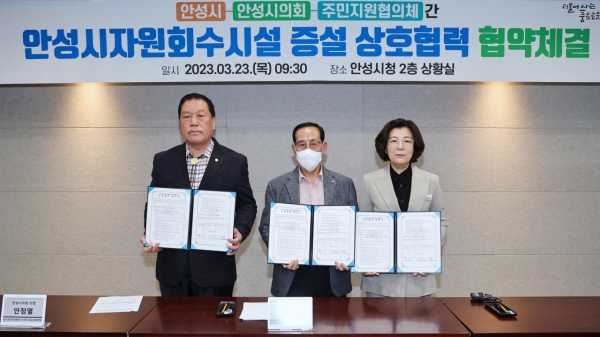 [금요저널] 안성시가 지난 23일 안성시의회 및 주민지원협의체와 공동으로 자원회수시설 증설을 위한 상호협력 협약을 체결했다고 밝혔다.