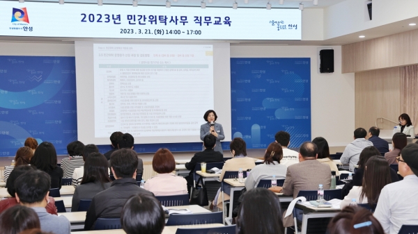 [금요저널] 안성시는 지난 21일 민간위탁 운영에 대한 투명하고 효율적인 운영을 위해 관련 공무원 및 수탁기관 대표자 등 100여명을 대상으로 민간위탁사무 직무교육을 실시했다.