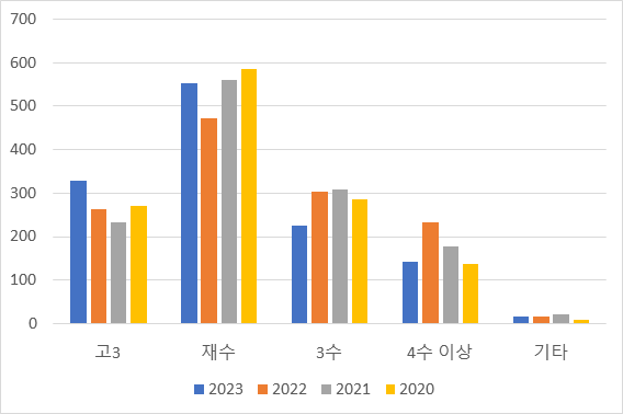 2023학년도에는 서울은 정시에서 36.3%인 460명이 정시모집으로 의대에 진학했고 4년 평균 36.7%였다.