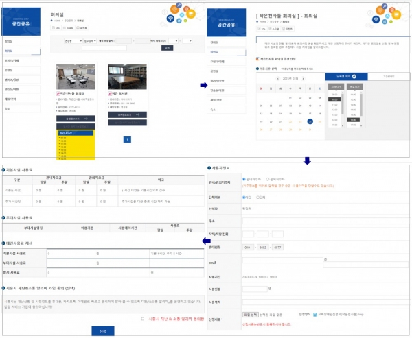 기본시설 사용료를 확인한 후 신청버튼을 누르면 회의실 대여가 완료된다.