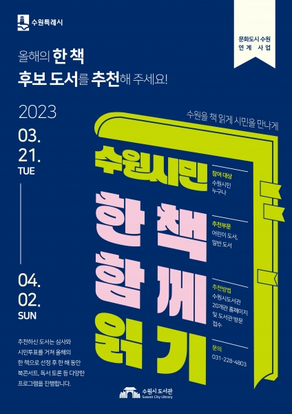 수원시민이 후보로 추천한 일반도서와 어린이도서 중 심사와 시민투표를 거쳐 함께 읽을 올해의 한 책으로 선정된다.
