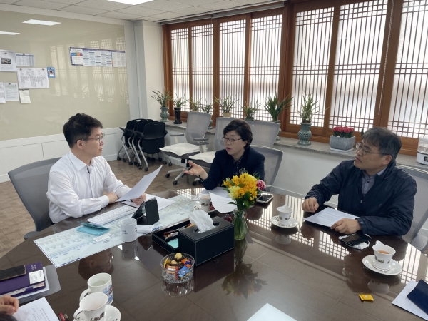 황인국 수원시 제2부시장은 23일 수원시청에서 박옥분 경기도의원, 박현준 경기비정규직지원센터 소장과 간담회를 열고 프리랜서 여성의 재직 증빙 방안을 논의했다.