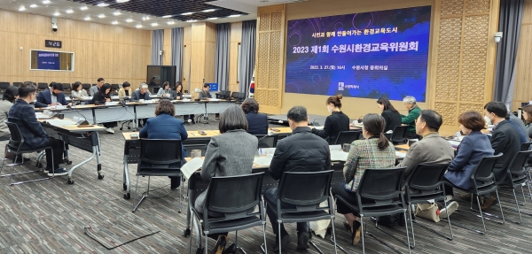 [금요저널] 수원시는 27일 시청 중회의실에서 ‘2023년 제1차 수원시 환경교육위원회’를 열고 ‘제3차 수원시 환경교육 계획’의 목표를 확대하고 올해 환경교육 실행계획을 효율적으로 운영할 방안 등을 논의했다.