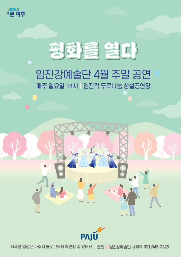 [금요저널] 파주시는 4월 2일 오후 2시, 임진강예술단의 북한문화예술공연 ‘2023년 평화를 열다’ 첫 공연이 임진각 평화누리 공원에서 열린다고 밝혔다.